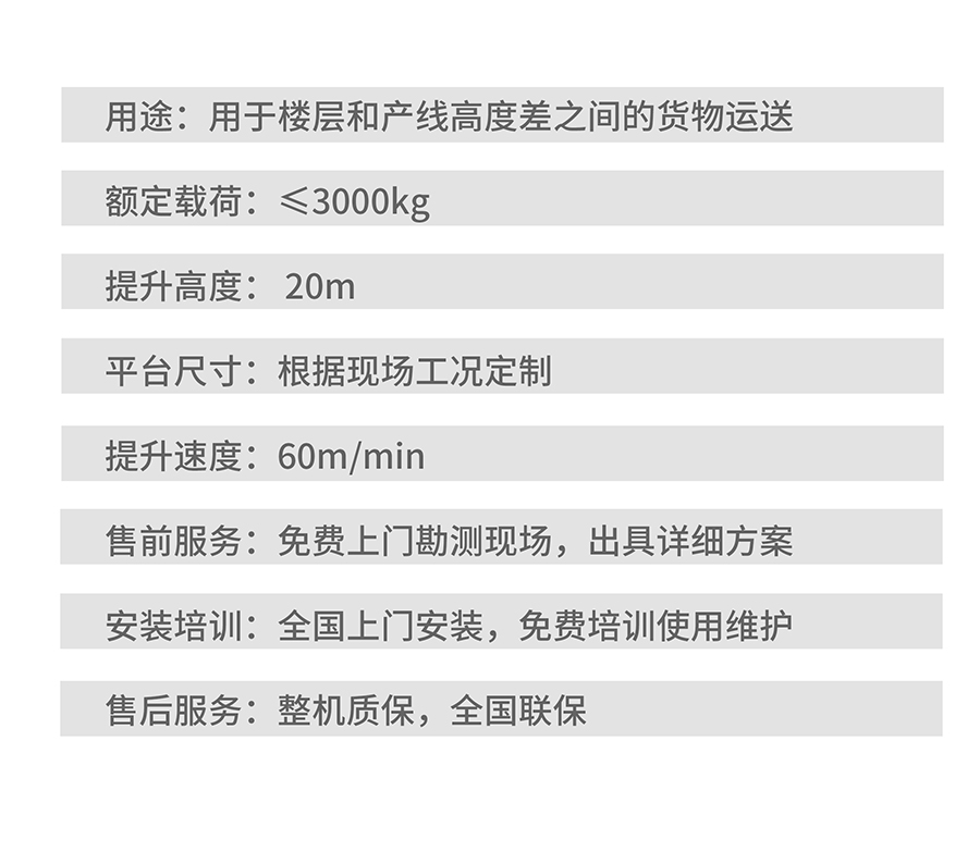 往復(fù)式提升機是由鏈條帶動,通過變頻調(diào)速控制電機,便提升轎廂上下往復(fù)運動.提升轎廂上配有傳動機構(gòu),以便被輸送物自動進入升降機的提升轎廂上。該類提升機具有控制先進,性能可靠,提升轎廂定位精度高等特點。